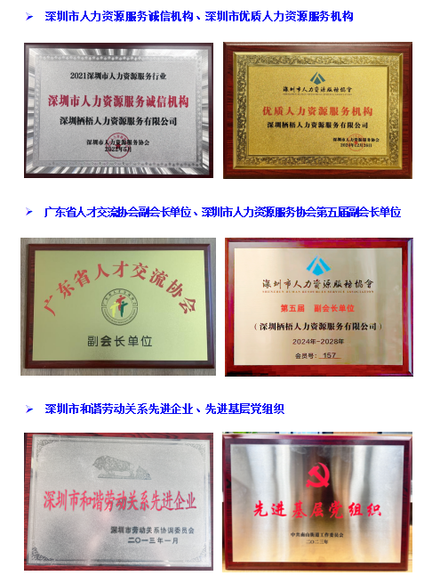 深圳栖梧人力资源服务有限公司成立于2009年,是经深圳市人力资源和社会保障部门批准设立的综合型人力资源服务机构,连续获得广东省5A级人力资源服务机构等多项行业认证。公司长期服务于党政机关、央企国企、世界500强及上市企业,业务涵盖人力资源外包、劳务派遣、灵活用工及后勤综合服务,服务网络覆盖珠三角并辐射全国。近年来,栖梧人力持续推动人力资源服务与园区运营、城市服务的协同发展,探索更加系统化、专业化的综合服务模式。